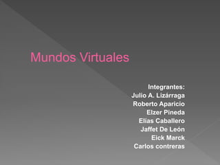 Este documento resume los conceptos clave de los mundos virtuales. Define un mundo virtual como un entorno artificial en línea donde los usuarios interactúan a través de avatares y objetos virtuales. Explora los precursores y primeros mundos virtuales, sus características, ventajas, desventajas y aplicaciones actuales como los videojuegos, simulaciones militares y aprendizaje en línea.