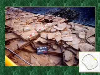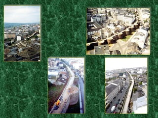 El documento resume las actividades de celebración del 5o aniversario de la declaración de la Muralla Romana de Lucus Augusti como Patrimonio de la Humanidad. Entre las actividades se incluyen una exposición, un concurso de dibujos y cuentos, y la presentación de las actas del congreso celebrado en Roma. También proporciona datos técnicos sobre las características de la muralla como su perímetro, los materiales utilizados, el número de puertas y cubos, y las torres y puertas que la componen.