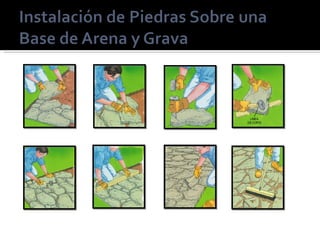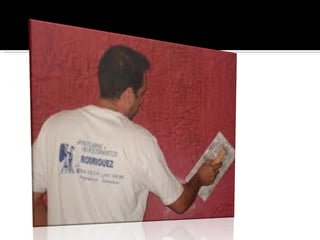 El documento describe los materiales y procesos para aplicar zarpeo y afine en una pared. Explica que el zarpeo se aplica primero usando una mezcla de cemento, cal, agua y arena. Luego, el afine se aplica sobre el zarpeo para darle un acabado más suave usando una mezcla más fina y una llana en lugar de una cuchara. También proporciona detalles sobre cómo preparar y colocar correctamente estas capas.