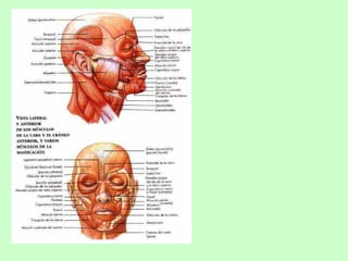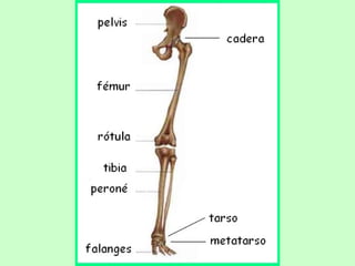 El documento describe el aparato locomotor humano, incluyendo los huesos, articulaciones, músculos y tipos de movimiento. Explica que los huesos y músculos trabajan juntos para permitir el movimiento y la postura a través de contracciones musculares controladas por el sistema nervioso. Describe los tipos principales de huesos, articulaciones y músculos del cuerpo y sus funciones.