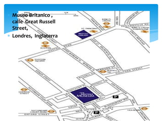 El Museo Británico se construyó en estilo neoclásico griego entre 1852 y 1857. Tiene planta cuadrada con cuatro alas y un gran patio interior con la sala de lectura. Su fachada principal presenta columnas jónicas, frontón triangular y escalinata de acceso, buscando reflejar la grandeza de las colecciones expuestas en su interior.