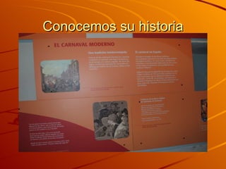 El documento habla sobre una visita a un lugar donde se conoce su historia a través de videos y disfraces de años anteriores, y donde se inspiran con carteles y elementos decorativos.