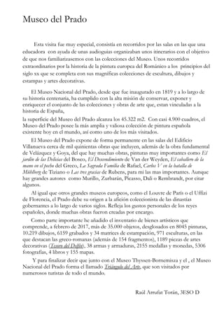 El Museo Nacional del Prado en Madrid alberga una de las colecciones de pintura más grandes e importantes del mundo, que incluye obras maestras de Velázquez, Goya, El Bosco, Tiziano, Rubens y otros grandes artistas. El museo cuenta con más de 8,000 pinturas, 10,000 dibujos y otras obras de arte en una superficie de 45,322 metros cuadrados. Originalmente fundado en 1819 para exhibir las colecciones reales españolas, el Prado continúa atrayendo a numerosos visitantes y