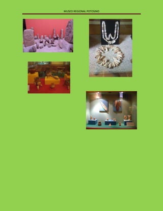 El Museo Regional Potosino se encuentra en un antiguo convento franciscano construido en 1586. Alberga una colección de artefactos y pinturas prehispánicas y del periodo virreinal, así como exhibiciones sobre la cultura de grupos indígenas de la región como los huastecos. El museo abre de martes a domingo de 10:00 a 19:00 horas con entrada de $37 pesos mexicanos.
