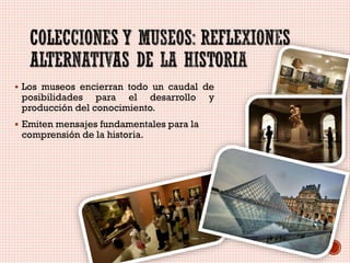 El documento describe varios museos en el estado de Sonora, México. Habla sobre el potencial de los museos para preservar objetos históricos y culturales y generar conocimiento. También menciona algunos museos específicos como el Museo de la Cárcel de Hermosillo, el Museo de las Culturas de Sonora, el Museo Étnico Takillote y el Museo de Arte de Sonora. Cada museo busca preservar y difundir aspectos de la historia y cultura de la región a través de sus colecciones