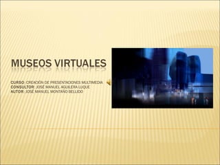 El documento describe los diferentes tipos de museos virtuales, incluyendo museos de aprendizaje y museos de marketing. Explica que la mayoría de los museos virtuales actuales toman sus responsabilidades educativas en serio y utilizan tecnología avanzada para ofrecer recursos educativos en línea de forma gratuita. También proporciona enlaces a varios museos virtuales españoles importantes como El Prado, Reina Sofía y Thyssen.