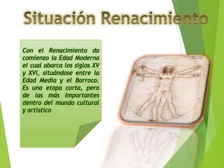 El documento proporciona información sobre el Renacimiento en tres oraciones o menos: