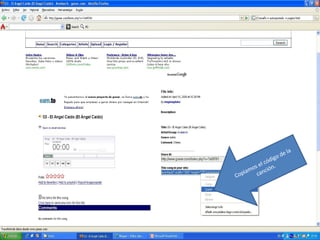 Este documento explica cómo insertar música de goear.com en un blog. Se recomienda buscar la canción deseada en goear.com, copiar su código, pegar el código en la entrada del blog y publicar la entrada para incluir la música seleccionada. También es posible agregar la música como un gadget de la página en HTML o JavaScript.