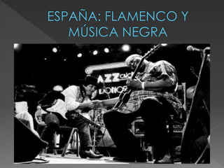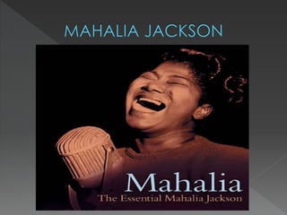 El documento resume la historia de los géneros musicales afroamericanos como el góspel, blues y jazz, desde sus orígenes en la época de la esclavitud hasta su desarrollo y auge. Explica cómo surgieron como expresión de la lucha y el sufrimiento de los afroamericanos y cómo influyeron en otros géneros posteriores. También presenta a algunos de los artistas más importantes como Bessie Smith, Robert Johnson, Muddy Waters y Louis Armstrong.
