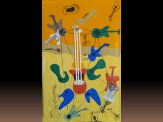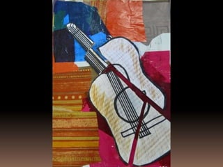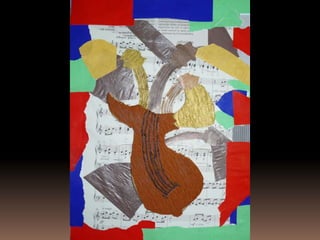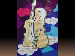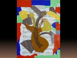 El documento describe un musical cubista de collage para estudiantes de 1o de ESO. Se divide en una exposición donde se presentan los temas y personajes principales de la obra musical de forma fragmentada y desde diferentes puntos de vista cubistas.