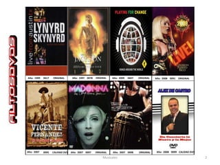 Este documento contiene una lista de más de 200 entradas que incluyen el año y número de identificación de varios artículos. Cada entrada parece referirse a un ítem diferente con su propia información de año y número. El documento está organizado en secciones tituladas "Musicales" que contienen múltiples entradas de este tipo con sus detalles respectivos.
