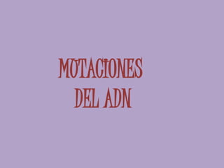 Las mutaciones son cambios en la secuencia de ADN que pueden ser beneficiosas, perjudiciales o neutrales. Pueden ocurrir de forma espontánea o ser inducidas por agentes mutagénicos como la radiación. Las mutaciones beneficiosas aumentan la probabilidad de supervivencia, mientras que las perjudiciales pueden causar la muerte. Las mutaciones son la base de la evolución de las especies al introducir variabilidad genética.