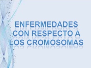 El documento aborda las mutaciones cromosómicas, definidas como alteraciones en la información genética que pueden ser espontáneas o inducidas, y su relación con diversas enfermedades asociadas a diferentes cromosomas. Se analizan múltiples ejemplos de patologías ligadas a mutaciones en cada uno de los 22 cromosomas, incluyendo el cromosoma X, así como los factores de riesgo y características del Alzheimer. Además, se discuten posibles tratamientos y estrategias preventivas para mitigar el impacto de estas condiciones genéticas.