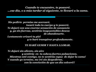 El documento es un poema que describe los síntomas de tener gripe de una manera muy sensual, incluyendo tocar el cuerpo sin permiso, dejar al lector sin aliento y con pulsaciones en la cabeza, y marcharse sin despedirse con la promesa de volver. El poema termina revelando que en realidad describe los efectos de tener gripe.