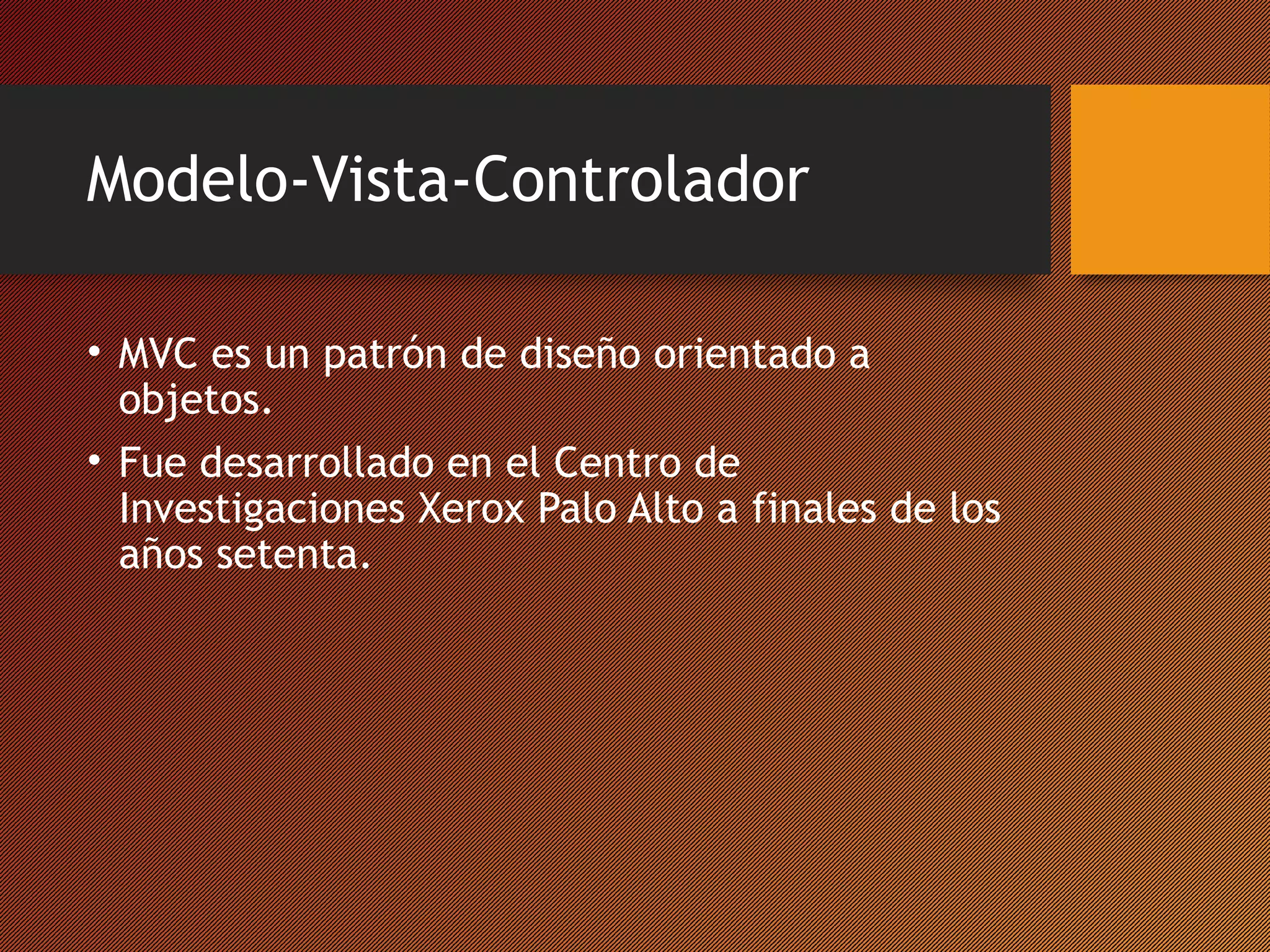 Este documento describe el patrón de diseño Modelo-Vista-Controlador (MVC). MVC separa la lógica de negocio de la presentación visual y la interacción del usuario. El modelo representa los datos y la lógica de negocio, la vista se encarga de la presentación, y el controlador gestiona las solicitudes y la comunicación entre el modelo y la vista. MVC es una solución adecuada para sitios web porque separa estas preocupaciones y permite mantener la persistencia de datos y presentarlos de diferentes formas.
