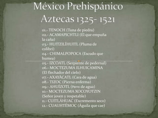 Los aztecas desarrollaron una sociedad compleja con una economía agrícola basada en la técnica de chinampas. La estructura social estaba dividida entre los privilegiados pipiltzin y los no privilegiados macehualtin. El gobernante supremo era el Huey Tlatoani que gobernaba desde Tenochtitlan.