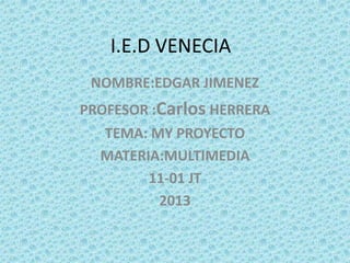 Este documento presenta el proyecto de Edgar Jiménez sobre su carrera elegida de aviación. Explica brevemente el significado de la aviación, la historia y evolución de los aviones, sus razones para elegir esta carrera y sus objetivos que incluyen crear un aeromodelo educativo y entrevistar a un piloto. También incluye un cronograma detallando las actividades planeadas para completar su proyecto.
