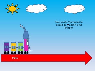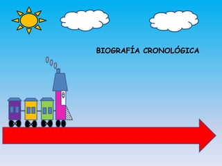 La biografía cronológica detalla eventos clave en la vida de una persona desde su nacimiento en Medellín en 1986 hasta su graduación con un posgrado en educación en 2015, incluyendo mudarse a Dosquebradas en 1988, el nacimiento de su hermana en 1991, graduarse de bachiller en 2003 e ingresar a la universidad en 2005 para estudiar pedagogía infantil.