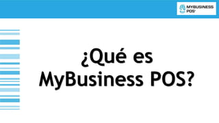 MyBusiness POS es un software de punto de venta diseñado para pequeños, medianos y grandes negocios. Ofrece funciones como ventas, compras, inventario, clientes y reportes. Incluye facturación electrónica, venta móvil, pagos con tarjeta y servicios en la nube. Está diseñado para diversos tipos de comercios y se puede personalizar a través de módulos. Es fácil de vender debido a que ofrece instalación remota, certificaciones en línea y soporte técnico.