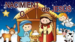 El ángel Gabriel anunció a María y José que tendrían un hijo, Jesús. Cuando José y María viajaron a Belén para el censo, no pudieron encontrar posada y tuvieron que pasar la noche en un establo, donde nació Jesús. Los pastores visitaron al recién nacido Jesús después de ser informados por los ángeles.