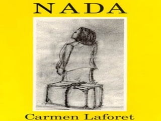 Este documento presenta un resumen del contexto cultural y social en el que se publicó la novela Nada de Carmen Laforet en 1944, así como un análisis de los aspectos narrativos, temáticos y de los personajes más destacados de la obra. Se describe la trilogía de novelas de Laforet que reflejan la evolución femenina y masculina, y cómo Nada emergió en el contexto del existencialismo europeo de la posguerra. El documento también analiza elementos como el espacio, la técnica narrativa, y el lenguaje utilizado