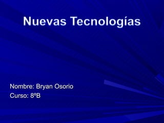 Este documento presenta una breve introducción sobre nanotecnología, biotecnología, automatización y robótica para el estudiante Bryan Osorio del curso 8oB. Define nanotecnología como el control y manipulación de la materia a nivel atómico y molecular, biotecnología como el uso de organismos vivos en agricultura, medicina y otros campos, automatización como el uso de sistemas computarizados para controlar procesos industriales en lugar de operadores humanos, y robótica como el diseño y aplic