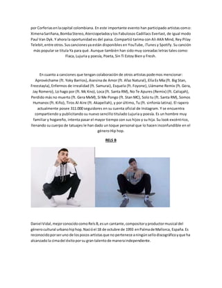 Nanpa Básico es un rapero y compositor colombiano nacido en Medellín en 1993. Surgió musicalmente en 2003 influenciado por artistas como Darío Gómez y Kjarkas. Utilizó sus letras para dar mensajes de inconformidad con la sociedad. Ha participado en varios festivales de hip hop en Colombia y lanzó su primer disco como solista titulado "Entre Esquinas". Actualmente, una de sus canciones más populares se titula "Ya para qué" y cuenta con 311,000 seguidores en Instagram.