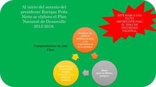 El documento describe la historia y evolución del narcotráfico en México desde finales del siglo XIX hasta la actualidad. Explica cómo surgió el cultivo de la amapola en el norte de México y cómo se formaron los principales cárteles de la droga que ahora controlan partes del país. También resume los esfuerzos del gobierno de Peña Nieto para combatir el narcotráfico a través de la creación de una fuerza policial especial y la cooperación con Estados Unidos.