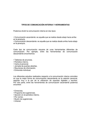 La comunicación interna es fundamental para el éxito de una organización. Para que sea eficaz, debe haber un flujo constante de información en todas las direcciones de forma equitativa, de modo que todos los empleados se sientan valorados y comprendan su papel en el logro de los objetivos. Anteriormente, la comunicación era principalmente unilateral desde la gerencia hacia abajo, pero ahora es importante considerar las opiniones de todos los colaboradores para mejorar la comunicación y el rendimiento. Una buena comunicación interna genera un sentido de pertenencia común y permite que