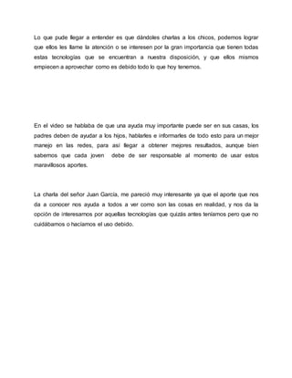 Un nativo digital es una persona que ha crecido rodeada de tecnología y es hábil en su uso. Las nuevas tecnologías pueden ayudar a los estudiantes en su educación si aprenden a usarlas de manera responsable para la investigación y el aprendizaje, en lugar de solo para el entretenimiento. Los padres deben guiar a sus hijos en el uso adecuado de las redes para obtener mejores resultados académicos, aunque los jóvenes también deben asumir la responsabilidad de su propio uso de la tecnología.