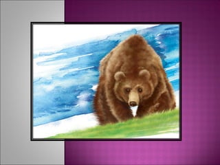 El documento proporciona información sobre varios animales. Habla sobre el oso, que puede pesar hasta 780 kg y varía su peso según la estación, comiendo mucho en otoño para hibernar en invierno. También menciona al delfín, que se adapta bien a cautiverio y puede medir hasta 3 metros, alimentándose de peces. Finalmente, describe al elefante, el mamífero terrestre más grande, que puede medir hasta 4 metros y pertenece a las especies africana e india.