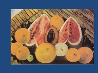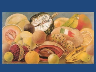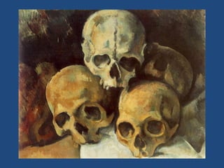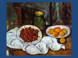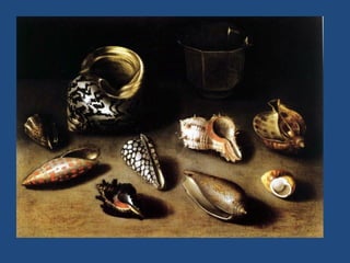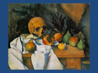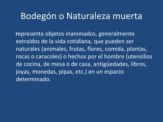 Este documento describe la evolución del género de la naturaleza muerta desde la antigua Roma hasta el siglo XX. Se detalla el desarrollo de la naturaleza muerta en diferentes épocas y lugares, incluyendo pintores como Jacopo de'Barbari, Clara Peeters, Caravaggio, Cotán y Chardin. También se explican subgéneros como la vanitas y cómo artistas como Dalí, Picasso y otros modernistas transformaron el género.