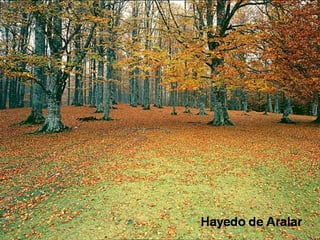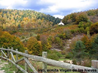 Este documento presenta una lista de lugares de Navarra, España, incluyendo pueblos, valles, ríos, bosques, sierras y otros sitios de interés como Beraiz, Aritzkun, las Bardenas Reales, el valle de Belagoa, el embalse de Alloz, la selva de Irati, la sierra de Urbasa y la cuenca de Pamplona-Iruña. La lista está dedicada a quienes trabajan por un mundo mejor.