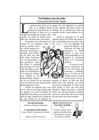 Este documento resume un artículo sobre la solidaridad y la opción preferencial por los pobres. Resalta las enseñanzas del Documento de Aparecida sobre ver a Cristo en los rostros sufrientes de los pobres y la necesidad de servirlos. También destaca la labor de Alberto Hurtado en Chile a favor de los más necesitados y la celebración del Mes de la Solidaridad en su memoria.