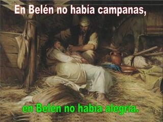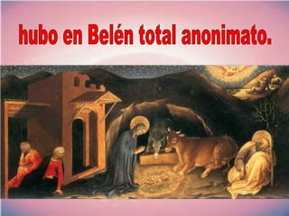 El documento habla sobre el significado de la Navidad y el nacimiento de Jesús. Explica que aunque la Navidad se asocia con alegría, regalos y comida, muchos no saben que se celebra el cumpleaños de Jesús. También destaca que en Belén, donde nació Jesús, no hubo grandes fiestas sino amor, ternura y sufrimiento de María dando a luz, a pesar de que allí nacía Dios. El documento invita a celebrar el nacimiento de Jesús con el corazón.