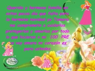 Tamara desea una feliz navidad a su familia, a quien ama y agradece por darle una vida feliz. Expresa su compromiso de cuidarlos, protegerlos y amarlos siempre. Varias personas también desean una feliz navidad a Thedy, Fernanda y Silvina, agradeciéndoles por enseñarles y ser buenas con todos.