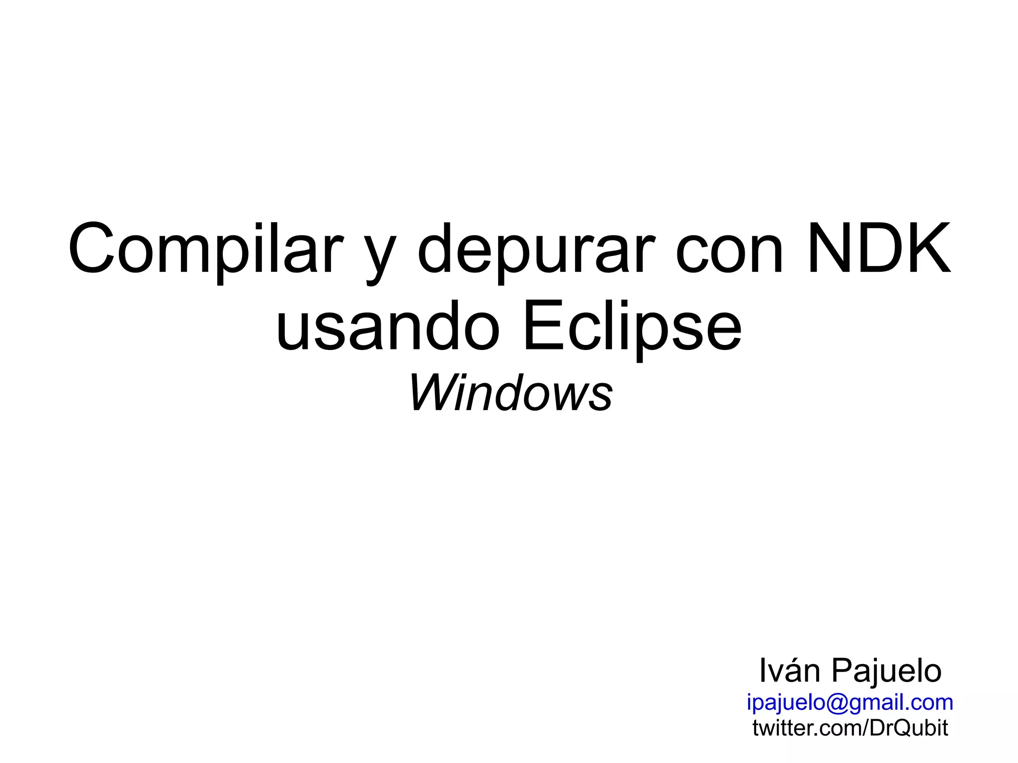 Este documento describe cómo configurar Eclipse para compilar y depurar aplicaciones nativas de Android usando NDK. Explica los pasos para agregar soporte nativo a un proyecto, compilar desde Eclipse ejecutando ndk-build, y depurar vinculando GDB al proceso de la aplicación después de que se haya iniciado y detenido en un punto de interrupción de Java. También cubre cómo configurar el lanzador y cliente GDB en Eclipse para depurar aplicaciones nativas.