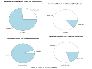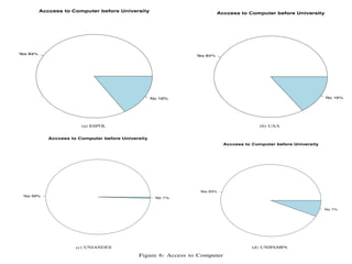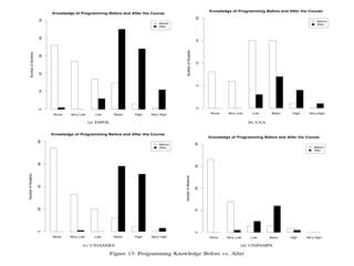 El documento resume los resultados de encuestas y pruebas realizadas a estudiantes de varias universidades ecuatorianas para conocer su contexto y pasado, estilos de aprendizaje y conocimientos sobre programación. Presenta datos demográficos de los estudiantes encuestados como edad, tipo de colegio donde estudiaron y acceso a computadoras e internet. También muestra los resultados de encuestas sobre estilos de aprendizaje y de una prueba sobre conocimientos de programación, con el fin de entender mejor a los estudiantes.