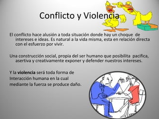 El documento habla sobre la resolución de conflictos corporativos. Explica que el conflicto es inherente a la sociedad y puede ser una fuente de cambio. Describe las etapas del conflicto como definir a los involucrados, el problema y el proceso, establecer acuerdos y determinar criterios. También cubre la escalada del conflicto a través de la polarización y la segregación, que pueden conducir a la violencia. Finalmente, destaca siete elementos clave para la resolución de conflictos como posiciones, intereses, opciones
