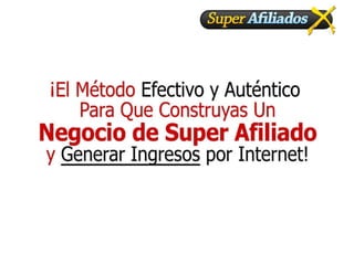 Este documento enumera 5 beneficios de ganar dinero como afiliado: 1) Puedes comenzar inmediatamente sin necesidad de experiencia o productos propios, 2) No requiere grandes inversiones, y 3) Es un sistema probado para ganar dinero en Internet. Finalmente, insta al lector a visitar un enlace para obtener más información sobre cómo aprovechar estos beneficios.