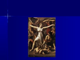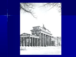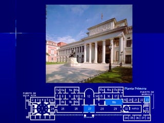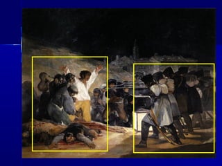 El documento describe el contexto histórico y artístico del neoclasicismo y la posición única de Goya dentro de ese contexto. Explica las características del neoclasicismo en arquitectura, escultura y pintura, centrándose en artistas clave como Canova, David e Ingres. Luego describe la vida y obra de Goya, destacando cómo su arte anticipó estilos posteriores y cómo se adelantó a su tiempo, escapando de las clasificaciones estilísticas.