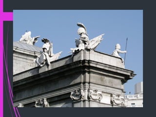 El neoclasicismo, que emerge en la segunda mitad del siglo XVIII, se caracteriza por la racionalización de la cultura y el arte influenciada por la Ilustración, reemplazando el enfoque religioso por una moral laica. Este movimiento busca recuperar los principios del arte clásico y refleja una indecisión estilística entre idealismo y realismo, llevando a un eclecticismo en la arquitectura y escultura. Figuras como Jacques-Louis David ejemplifican la pintura neoclásica, donde priman temas históricos y mitológicos, con una búsqueda de equilibrio y una estética de simplicidad y perfección.