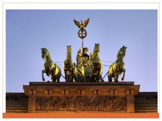El documento describe las características del estilo neoclásico en arquitectura, escultura y pintura entre 1750 y 1830. En la pintura, destacan Jacques Louis David y Jean Auguste Dominique Ingres, quienes se inspiraron en modelos clásicos de Grecia y Roma. En escultura, Antonio Canova creó obras idealizadas basadas en la perfección técnica y formas simplificadas. La arquitectura también se volvió hacia las formas sencillas y grandiosas de la antigüedad clásica.