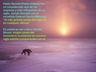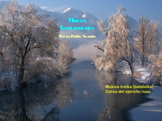 Este poema de Pablo Neruda describe las formas en que una persona puede "morir lentamente", incluyendo volviéndose esclavo de los hábitos, evitando las pasiones, y no arriesgándose a vivir una vida plena. Neruda insta al lector a vivir el presente, arriesgarse, y no dejar que la vida pase sin disfrutar la felicidad.