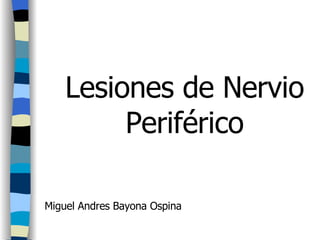 El documento describe varias lesiones nerviosas periféricas, incluyendo el síndrome del túnel carpiano, el síndrome del túnel cubital, el neuroma de Morton y el síndrome del túnel tarsal. Explica la anatomía, etiología, síntomas, diagnóstico y tratamiento de cada condición.