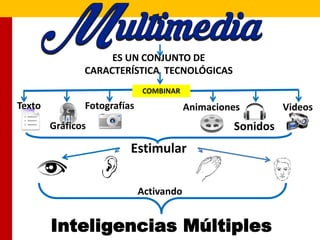 El documento describe las características básicas de los multimedios y cómo evaluar un buen recurso multimedia educativo. Las características clave de los multimedios son la interactividad, ramificación, transparencia y navegación. Un buen recurso multimedia educativo debe cumplir con aspectos funcionales, técnicos y pedagógicos como facilidad de uso, calidad de contenido, innovación tecnológica y despertar el aprendizaje autónomo. La evaluación debe considerar la identificación del entorno, aspectos técn