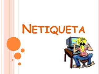 La netiqueta se refiere a las normas de comportamiento adecuado en internet. Estas normas ayudan a evitar ofender a otros o malinterpretar sus mensajes. Algunas recomendaciones básicas de netiqueta para el correo electrónico incluyen identificarse con su nombre, escribir asuntos claros sin faltas de ortografía, controlar el uso de mayúsculas y minúsculas, y firmar los mensajes con su nombre y dirección de correo electrónico. La netiqueta se ha desarrollado de forma organizacional y comunit