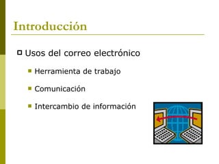 Este documento presenta las reglas básicas de la netiqueta y la etiqueta para el uso del correo electrónico y los teléfonos celulares. Explica que la netiqueta se refiere a las reglas de cortesía y buenos modales en Internet y cómo comunicarse de manera efectiva y respetuosa. Luego, detalla recomendaciones específicas sobre el estilo, formato, envío y respuesta de correos electrónicos, así como sobre el uso adecuado del volumen y consideración por los demás cuando se usa el teléfono