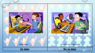 Este documento presenta una lista de 10 pares de comportamientos que se deben y no se deben seguir en el ámbito de la administración de la salud ocupacional. Se enfatiza la importancia de seguir las reglas, estar seguro de la información, ser paciente, agradable y respetuoso con los demás, compartir información de manera cordial, respetar la privacidad y brindar apoyo en lugar de aprovecharse de los demás o juzgarlos.