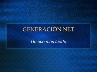 El documento describe a la Generación Net, que son aproximadamente 80 millones de personas que crecieron rodeadas de medios digitales y usan la tecnología para aprender, jugar y comunicarse. El uso de computadoras forma parte integral de su niñez y desarrollo. Cuando los niños controlan activamente los medios en lugar de limitarse a observar pasivamente, se desarrollan a un ritmo más acelerado. Los de la Generación Net prefieren interactuar con la tecnología como usuarios en lugar de limitarse a ser espectadores, y es posible que transformen incl